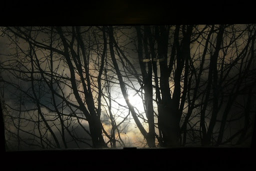 I have no idea why it looks like there are spots of fire in my backyard there in the grass....maybe it was a reflection from my camera on the glass window.....very odd looking though...